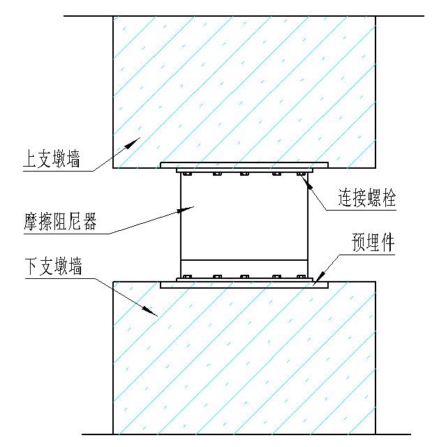 上、下連接板與預(yù)埋件固定,摩擦阻尼器通過螺栓固定在預(yù)埋件上后段焊加固。