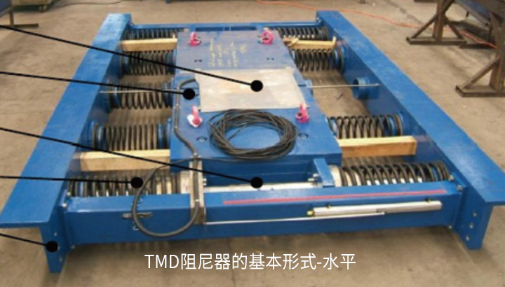 電梯調(diào)頻質(zhì)量阻尼器系統(tǒng),簡(jiǎn)稱TMD,由固體質(zhì)量、彈簧、阻尼桿組成。